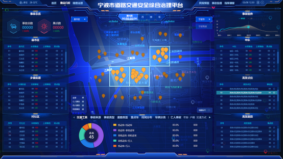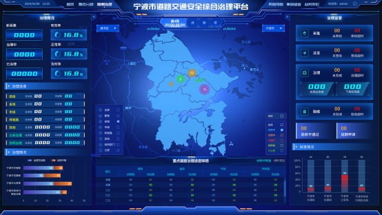 道路交通安全综合治理系统构建隐患发现、治理、评价机制,打造交通安全综合治理新模式。通过综合运用事故警情全要素采集数据、事故业务全链条汇聚数据、外部支撑全方位融合数据等多源数据,通过时空聚类、多维评价等模型算法,推动事故隐患风险精准发现,全面分析成因,提供治理对策,监管职能部门协同治理,并开展成效跟踪评价,形成完整的治理闭环,全面提升交通安全水平。