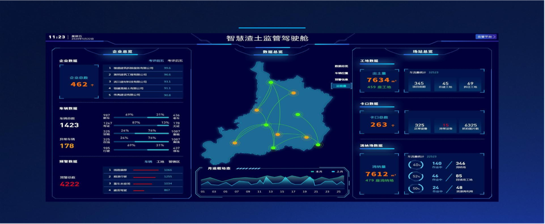 针对渣土车盲区多、运输事故频发、沿路撒漏造成环境污染等问题,公司推出渣土车智能化治理方案和渣土车管理平台。通过在车辆各方位安装摄像头、各类状态检测传感器、声光报警器和 GPS 等设备,结合 AI 视觉技术和物联网通信技 术,形成渣土车超速、渣土车超载、渣土车抛洒、渣土车行驶 路线、盲区预警、司机实名认证、疲劳驾驶检测的智能化治理 方案。渣土车管理平台可实时查看渣土车行车位置、速度、方向,以及车厢的举升、密闭、空载重状态。同时系统将渣土车 辆、工地、消纳场的视频纳入统一监管,助力交管、城管、公 安、渣土办等部门智慧化管理渣土车。通过对渣土车的运行全程监控,进而规范驾驶员的安全操作驾驶,避免由于渣土车鲁 莽驾驶导致交通事故的发生。